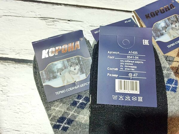 Подробное описание: Чоловічі теплі шерстяні термо шкарпетки з собачої шерсті вовни