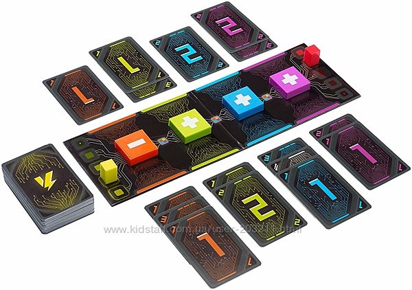 Игровое поле поделено на 4 зоны (по цвету), в каждой зоне находится двусторонний пластиковый маркер терминала - "плюсом" или "минусом" кверху. В свой ход игроки могут добирать карты, выкладывать их, как со своей стороны поля, так и со стороны соперника, или переворачивать маркеры терминала (если это позволяют только что взятые карты). Как только в какой-то зоне наберется 5 карт, они убираются с поля и дают победные очки кому-то из игроков - в зависимости от того, какой стороной лежал в этой зоне маркер. Т.е. если маркер лежал "плюсом" кверху, игроку надо, чтобы с его стороны поля сумма номиналов карт была больше. Также в колоде есть несколько карт спец.действий. Игра идет до 4-х победных очков.