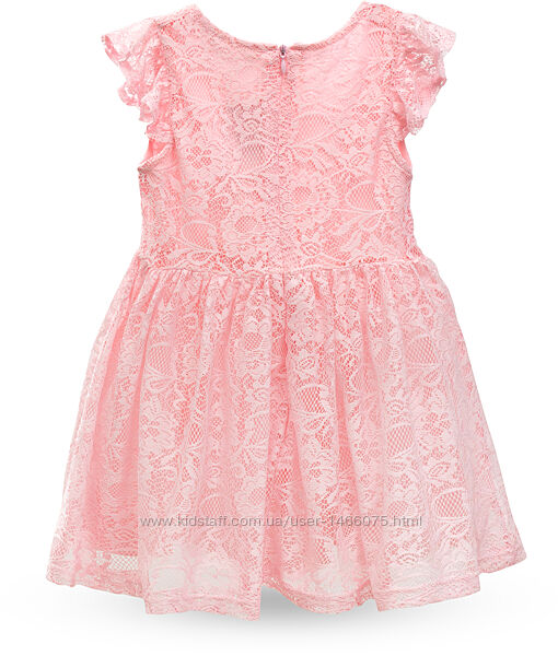 Великолепная нарядная ажурная модель приятного, нежно-розового цвета с короткими рукавами-крылышками для вашей красавицы.