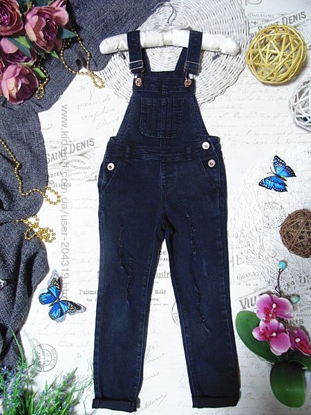 Крутой джинсовый полукомбинезон DenimCo на 4-5 лет,рост 104-110 см68%коттон,31%полиєстер,1%эластан (стрейч)