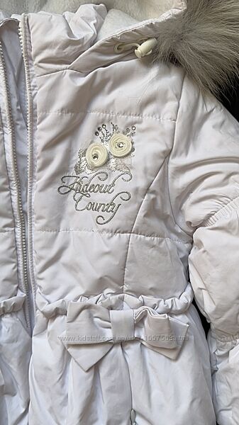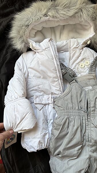 Комплект для дівчинки 92 см ріст від украінського виробника Garden babyКурточка подовжена білого кольору та напівкомбінезон білого кольору