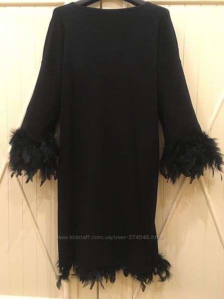 Платье из мягкого джерси, создающего уютный комфортный образ. Овальный вырез, рукава реглан, перья по низу и рукавам.Размер S/М.