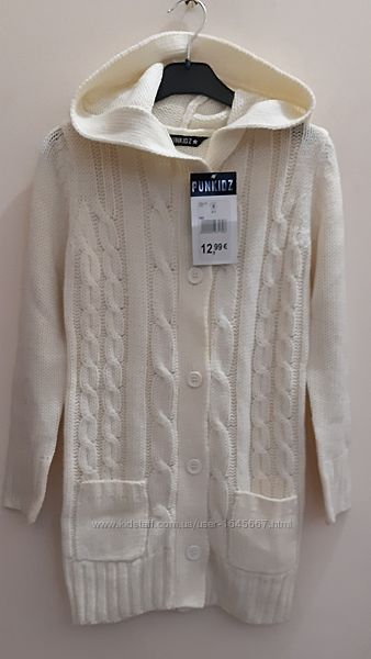 Привезенные из Германии вязанные кофты кардиганы с капюшоном, на пуговицах, с двумя карманами на девочек от 6 лет до 14 лет, длинные до середины бедра.ЗАМЕРЫ