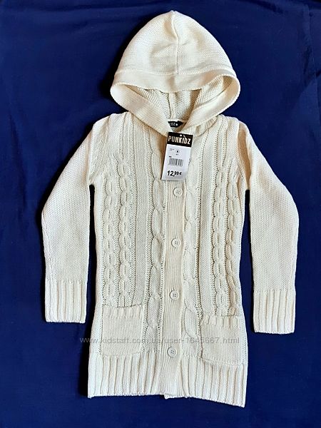 Подробное описание: Вязаная кофта кардиган на пуговицах, Punkidz Франция на 6-14лет 116-164см