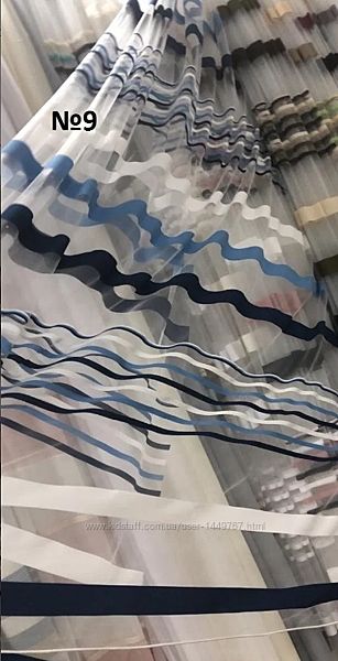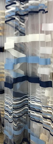Подробное описание: Тюль фатин c cине-голубыми полосками