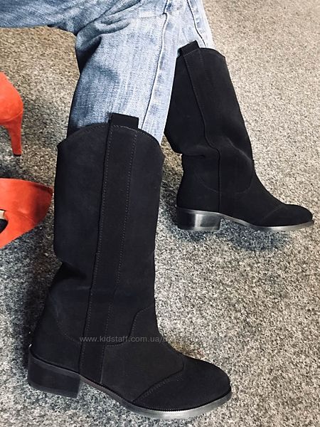 Подробное описание: Распродажа Сапоги Казаки зимние замшевые чёрные кожаные