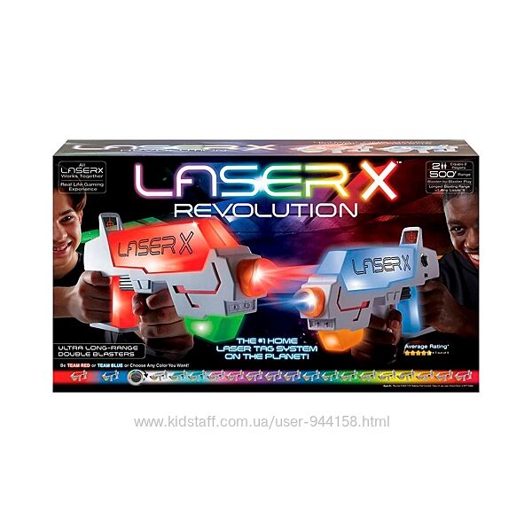 88178 Игровой набор для лазерных боев - Laser X Revolution Long Range для двух игроковАктивный отдых – хорошо. Активный отдых с игровым набором для лазерных боев Laser X Revolution Long Range для двух игроков – разнообразнее, интереснее, веселее! С новыми футуристичными бластерами Вы сможете создать арену для настоящих храбрецов дома или во дворе! Выбирайте цвет команды, заряжайте бластер и вперед! Лазерный бой начинается!