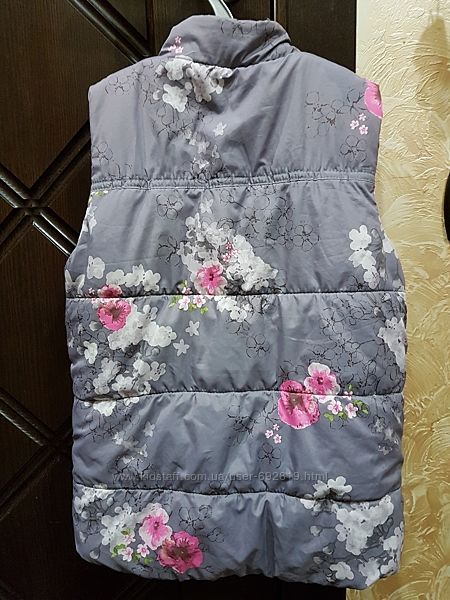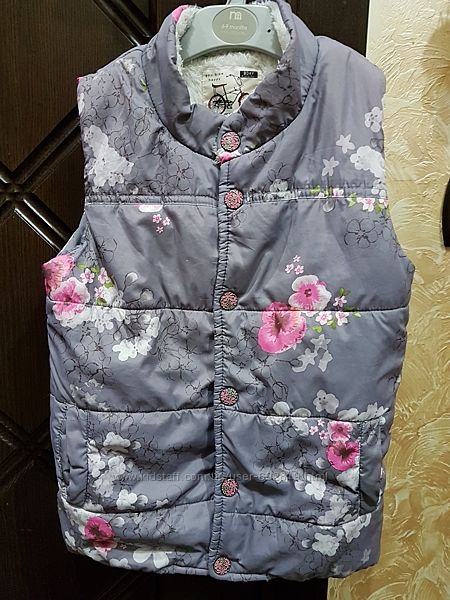 Жилетка серая в цветах для девочки NEXT. Размер на бирке 4-5лет. Мы носили до 8лет. Замеры: длина по спинке 52см(от шейного позвонка), обхват в груди 79см., проем рукара 19см. (от плеча к подмышке по переду), длина поеча -7см (от шеи). Застежка кнопки все застегиваются.Жилетка меховая ZARA цвет бордо. Размер на бирке 9-10лет, 140см. Замеры: длина по спинке 55см (от гейного пощвонка), обхват в груди 78см., проем рукара 24см. (от плеча к подмышке по переду), длина плеча - 10см(от шеи). Застежка крючки, мех не свалян и не затерт.