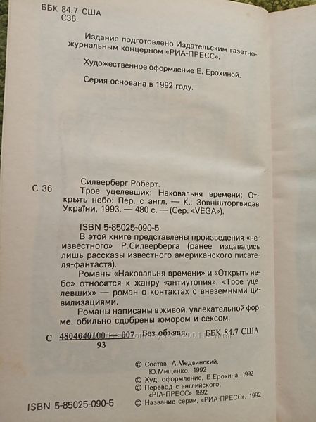 Книга Роберта Силберга "Трое уцелевших. Наковальня времени. открыть небо".Издательство "Зовнішторгвидав України", Київ, 1993