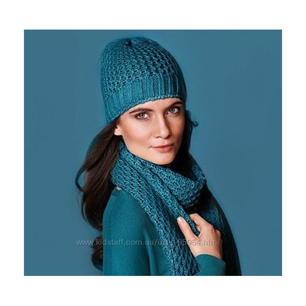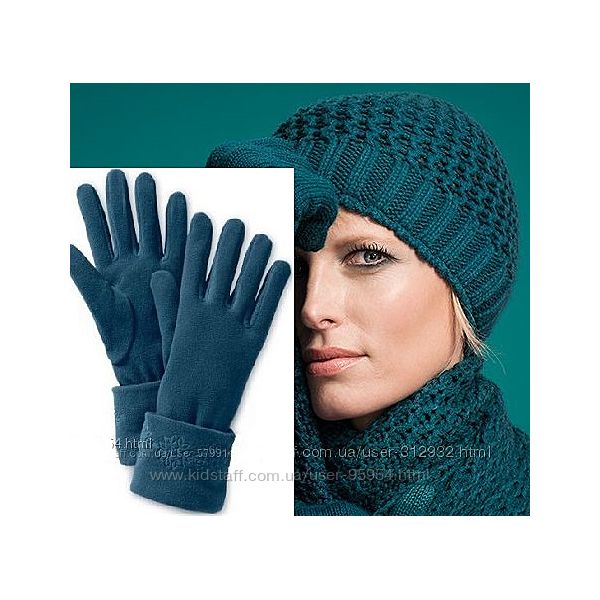 1. Вязанная шапочка, шарф и флисовые перчатки, цвет морской волны, 450 грн