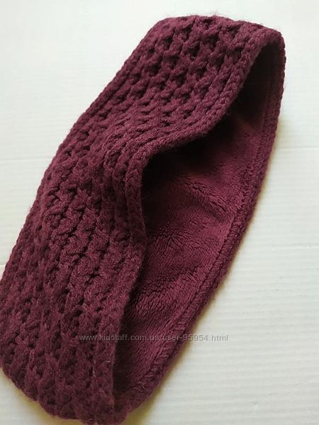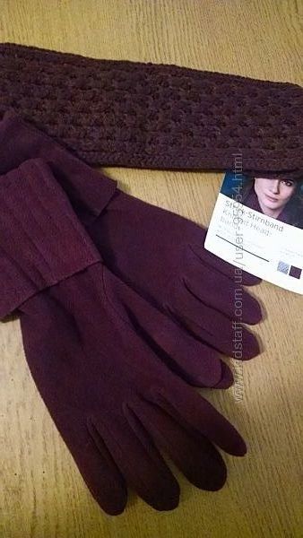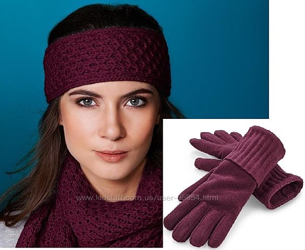 2. Вязанная повязка и флисовые перчатки, цвет бордо, 195 грн