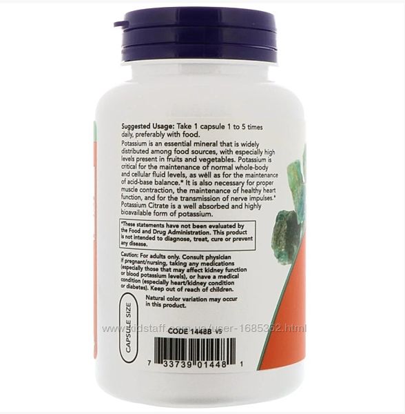 Now Foods, Калий Цитрат, 180 растительных капсулОписание Основной минерал