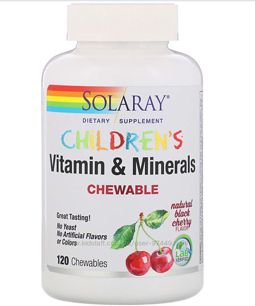 Подробное описание: Solaray, жувальні вітаміни та мікроелементи для дітей, зі смаком черешні