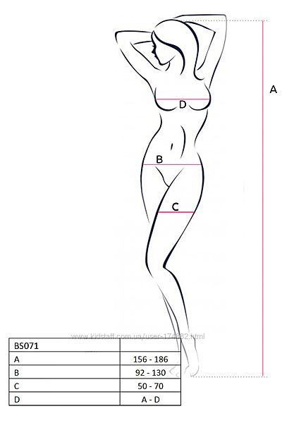 S/L ОГ (А-D) ОТ (60-78) ОБ (88-130) Объем ноги (50-70) рост 156-186 см