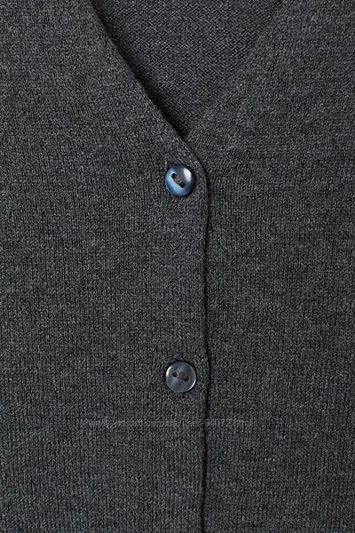 Кардиган тонкой вязки из мягкого хлопка. Застежка на пуговицы спереди, треугольный вырез горловины и рельефная обвязка низа рукавов и нижнего края.