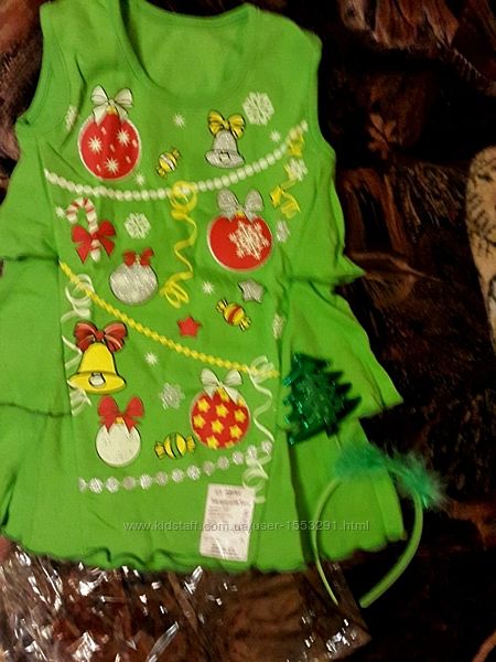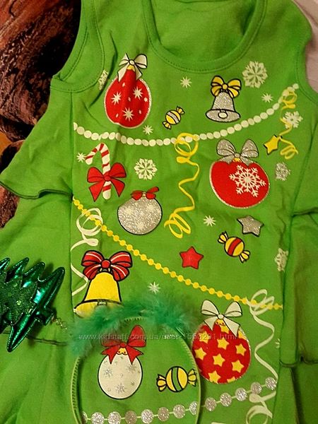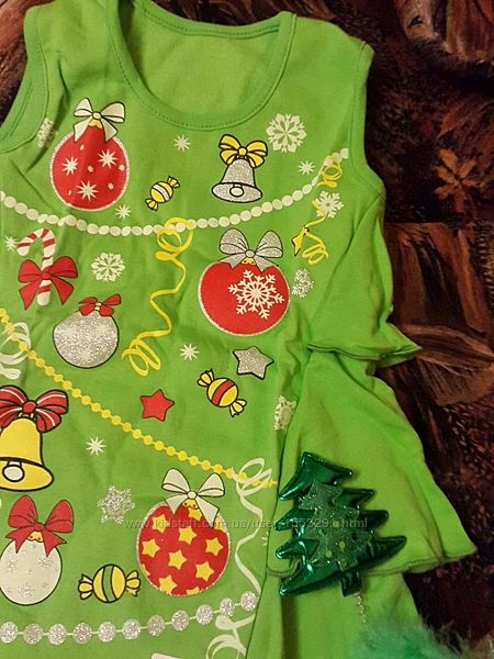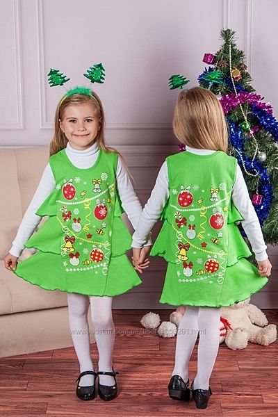 Ф. 3-8. Костюм "Ёлочка" прекрасно подходит для новогоднего утренника и карнавала. Платье изготовлено из футера, и украшено накатом по переду и на спине.