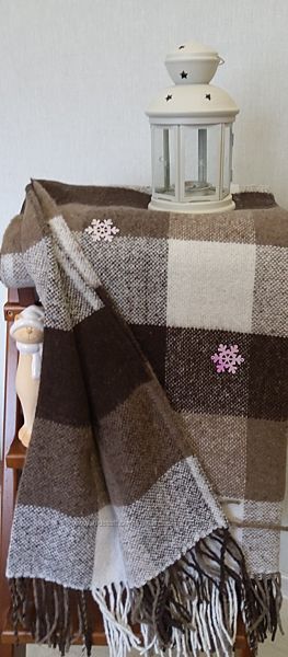 Плед имеет 20% шерсти новозеландских овец в своем составе и ПЭ