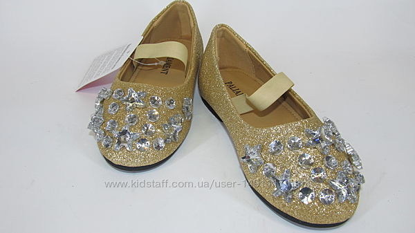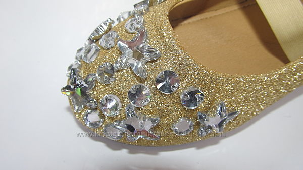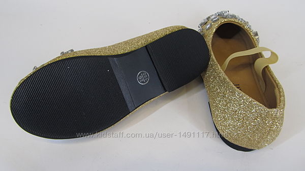 Новые нарядные туфельки балеточки для девочки золотистые с оригинальными стразиками. Блестят и без солнышка. В реальности лучше чем на фото. Идеально подходят на утренник в детский сад, праздники. На резиночках, которые хорошо держат ножку. Легкие.
