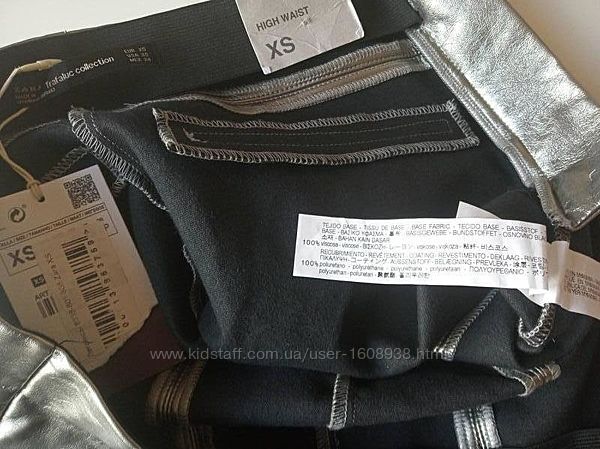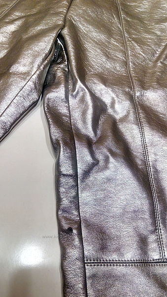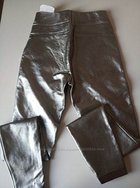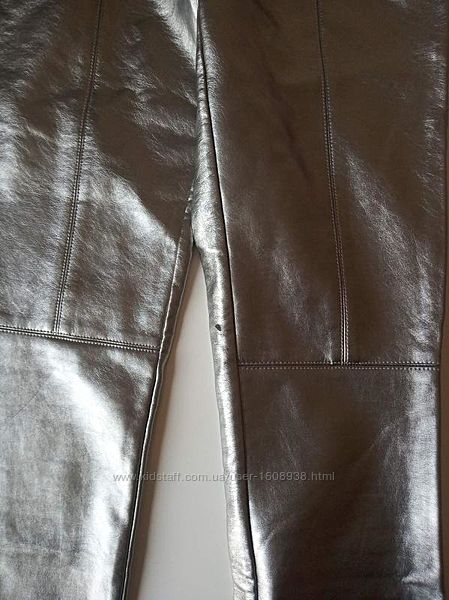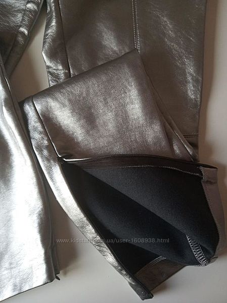 Брюки со стречем. Внутренняя часть из натуральной ткани. Снаружи стильный и модный серебристый цвет. Замки внизу брюк, боковой замок. Есть небольшая стертость между брюками Размер XS.