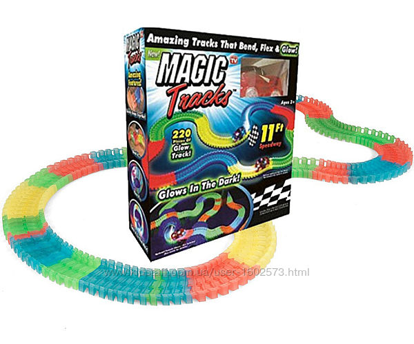 Игрушечная электронная гоночная трасса Magic Tracks – это отличный досуг для ваших детей!Светящийся Magic Tracks является совершенно новым и необычным гоночным треком. Гоночная трасса изготовлена из высококачественного пластика, который совершенно безопасен для ваших детей! Волшебный трек с потрясающим ипподромом, который может изгибаться, сгибаться и светиться не оставит без внимания всю семью.