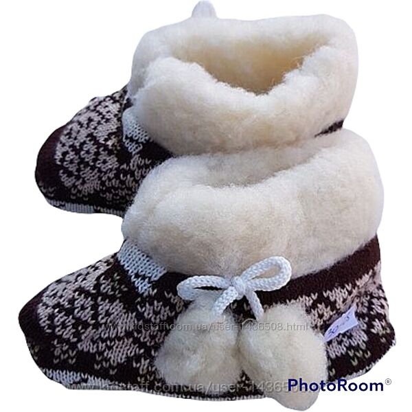 Чуни из овечьей шерсти, верх вязаный. Подошва антискользящие пупырышки, так что не скользко. Тёплые, красивые, ноские, мягкие. Отличная домашняя обувь для деток. Благодаря особенностям овечьей шерсти происходит циркуляция воздуха и нога в них не потеет. Размеры: 23/24, 25/26, 27/28, 29/30, 31/32.Размер Длина стельки (см)