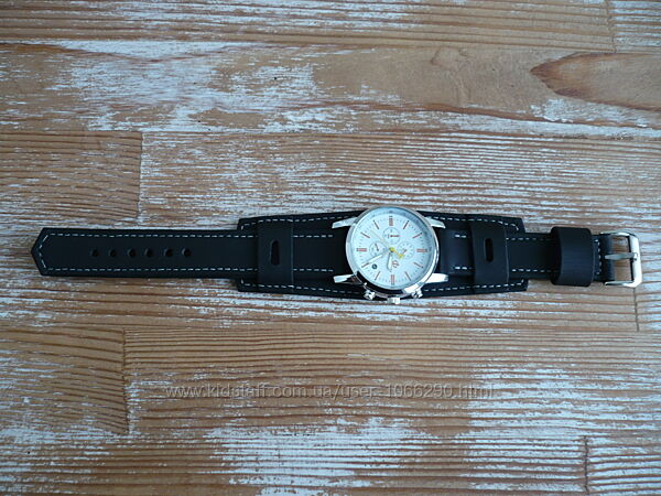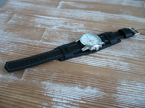 Браслет для часов. Изготовлен из кожи КРС «Crazy horse», цвет черный. Браслет рассчитан на часы длиной 45мм +/-. Края обработаны средством tokonole (Япония). Прошит вощеной нитью 0,35 мм. Финишное покрытие – жировой крем IEXI wrens dubbin (Италия). Размер: 130 * 20 мм, 75 * 20 мм. Размер центральной части: 130*40 мм. Литой пряжка из нержавеющей стали с глянцевой лицевой поверхностью. Ручная работа. Ценность: 550 грн.