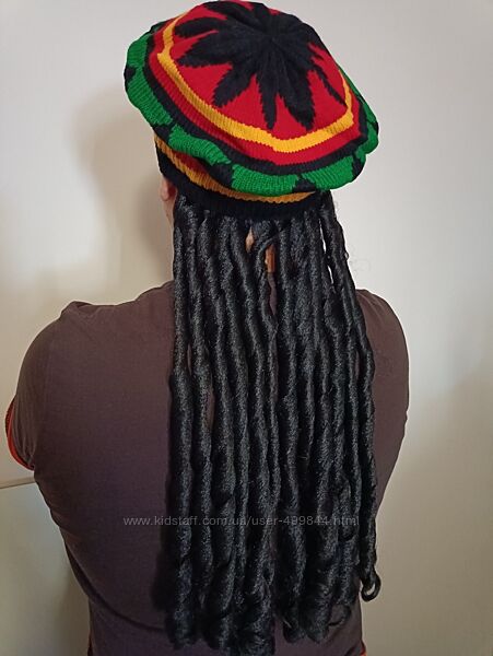 Шапка берет растамана с дредами. Размер Универсальный на объем головы 54-57.Карнавальные аксессуары.