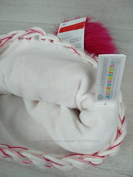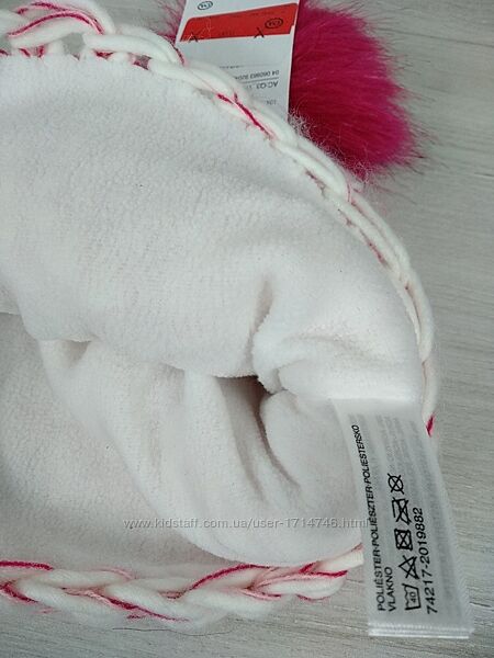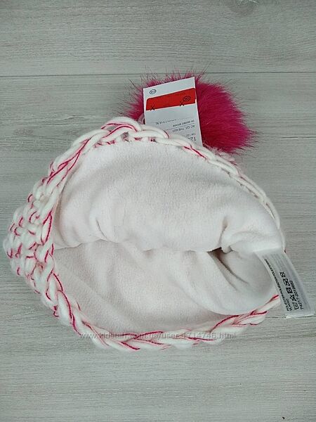 Красива зимова шапочка всередині на теплому флісі від C&A. Зверху бомбон зі штучного хутра.Сток, з біркою.