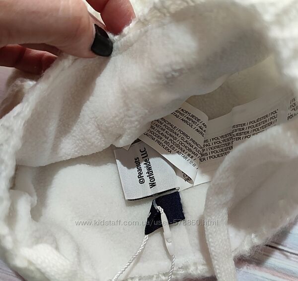 Кремова шапочка зі Snoppy від італійського бренду Original Marines для дівчинки у розмірі 42 (с4).Всередині фліс, верх красива ажурна в´язка. Класна нашивка зверху, шапочка із зав´язками.