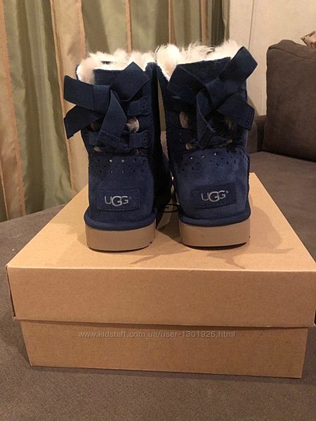 Шикарні УГГ глибокого синього кольору, з вибитим візерунком та бантом ззаду.На 37,5-38 розмір євро.