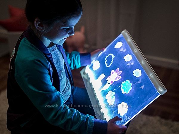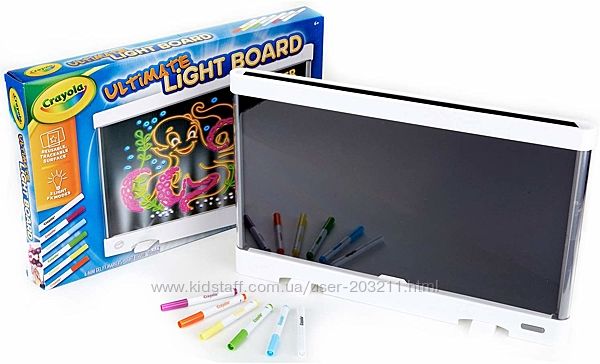 Планшет Crayola Ultimate Light Board Drawing - необычный подарок для детей в возрасте от 6 лет и старше. Любой ребенок будет рад попробовать рисовать светом! Точнее, увидеть, как обычный рисунок маркерами начинает светиться на этой волшебной доске!