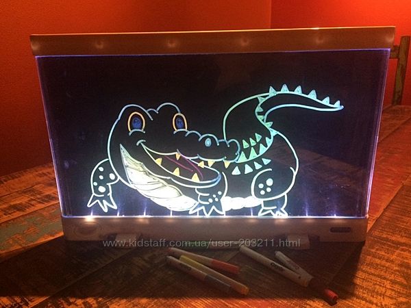 Ваше творение становится световым! Вы можете создать удивительное произведение искусства и увидеть его совершенно уникальным образом (и показать окружающим). Просто нарисуйте свой шедевр прямо на поверхности доски и включите его. Смотрите, как засверкает, засветится ваш рисунок!