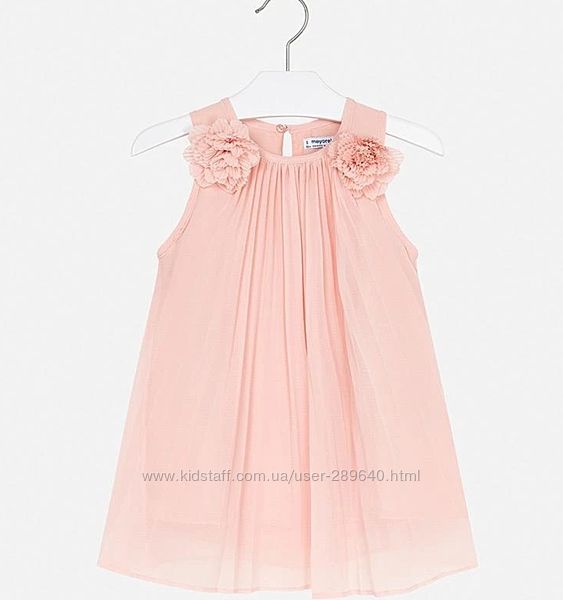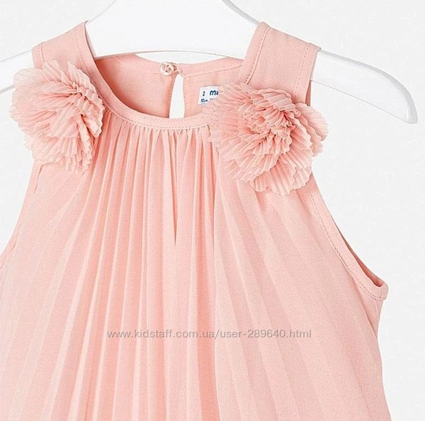 Нарядное платье в складочку из новой коллекции от испанского бренда Mayoral:-- персиковое: 104 см на 4 года; 110 см на 5 лет; 116 см на 6 лет; 122 см на 7 лет; 128 см на 8 лет;
