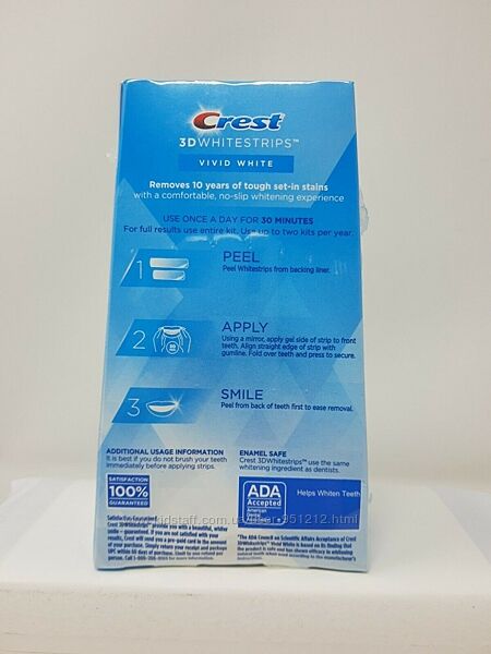 Подробное описание: Отбеливающие полоски Crest 3D Whitestrips Vivid White США - поштучно