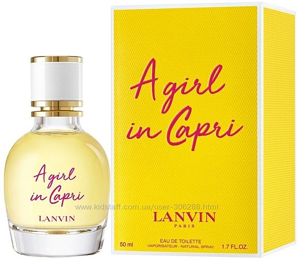 A Girl In Capri Lanvin — это аромат для женщин, он принадлежит к группе цитрусовые. Это новое издание: A Girl In Capri выпущен в 2019 году. Парфюмер: Sophie Labbe. Верхние ноты: Итальянский лимон и Бергамот; средние ноты: Цветок грейпфрута и Морские ноты; базовые ноты: Белый мускус, Влажная древесина и Амбра.