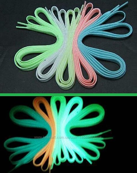 Флуоресцентные шнурки впитывают свет на протяжении дня, после чего сами светятся в темноте!