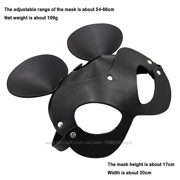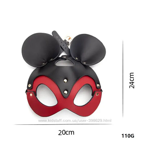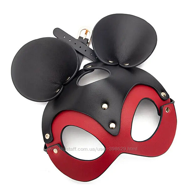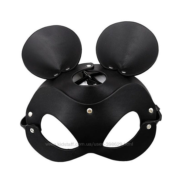 Черная маска Микки Мауса из кожи. Изящная и достойная, для смелых духом людей. Украшена серебряными заклёпками. Застегивается на тоненькие ремешки под нужный размер. Материал: Искусственная кожа.