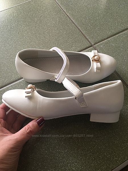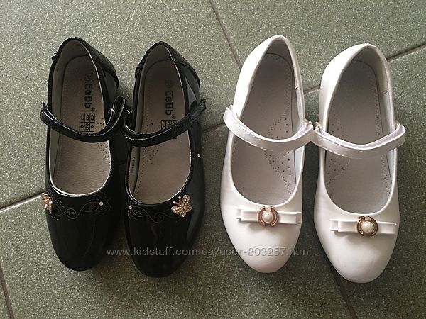 Туфли белые в идеальном состоянии, размер 33, обували раза 3 в помещении, цена 200 грн. ПРОДАНОЧерные лаковые в отличном состоянии, немного есть царапки на носках, практически не заметны ,цена 100 грн .