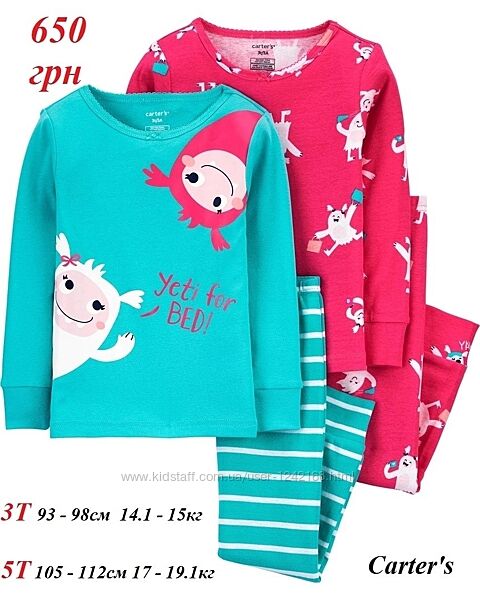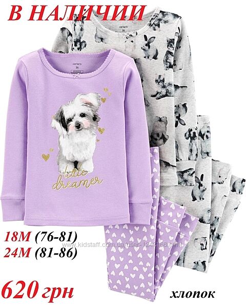 Хлопковые пижамки Картерс в наличии.Цена за набор из 2 хлопковых пижам от 600 до 750 грн.