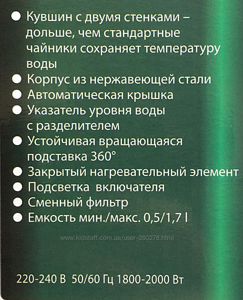 Для удобства пользователей имеется функция автоматического отключения на момент закипания, возможность вращения на подставке на все 360°.
