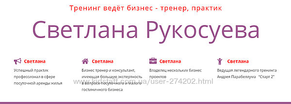 Подробное описание: Светлана Рукосуева Квартиры посуточно Бизнес с нуля 5-й поток Тариф Голд