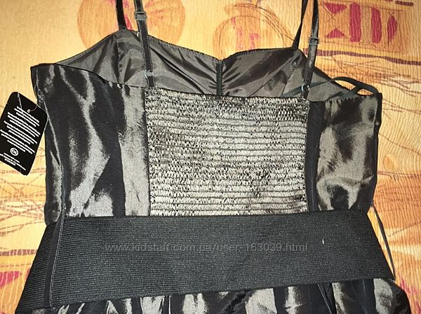 Очень красивое платье с подъюбником графитового цвета. Длина бретелек регулируется. Ширина груди регулируется сборкой сзади. В боковом шве находится молния.