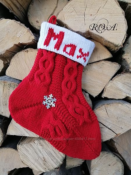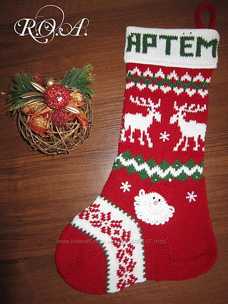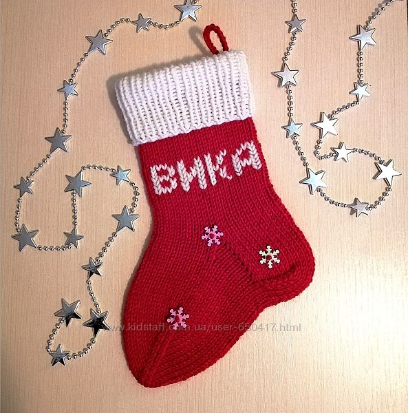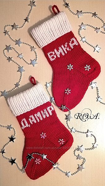 Предлагаю оригинальную идею - вязаные именные Рождественские носки для подарков.Свяжу на заказ с любыми изменениями модели (по фото из интернета). Цвет, узор на выбор. Цена от 300грн., в зависимости от размера.