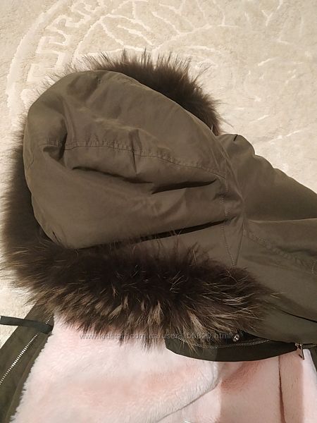 Mango парка р S по бирке но можно на ММеховая подкладка отстёгивается!оч мягкая теплая Цвет- Хаки Внутри на кулиске Мех на капюшоне - енот ( не родной) Продаю вместе с ним! Розовый исск мех - родной по каталогу Фурнитура- качественная ! Не облазит и ТД Состояние отличное! В химчистке не была !