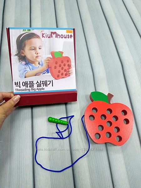 Шнуровка для развития мелкой моторики пальчиков.Из толстого бруска дерева, удобного для удержания маленьким детям.