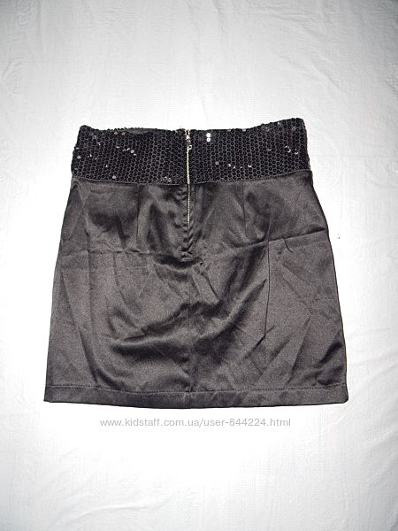 цвет - черный, обшита по верху пайетками, прямой покрой, без подкладки, материал обычной юбочной плотности