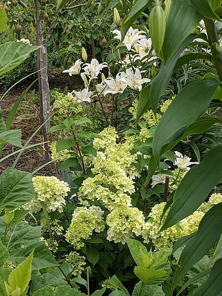 Limelight (Лаймлайт) – прекрасный сорт метельчатой гортензии,отлично держит форму, крупные соцветия никогда не поникают. Очень востребованный сорт у садовых и ландшафтных дизайнеров. Соцветия цвета лайма, светло салатовые до 30 см. Кусты очень крупные до 2 м, усыпанный соцветиями, которые прочно держат побеги, куст не распадается. Цветение – с июня и до самых морозов. Окраска соцветий за период цветения меняется от салатовой до кремовой. Листва – красивая, здоровая, густая, бархатистая