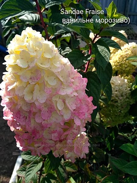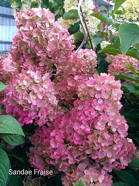 Sаndae Fraise – это достаточно новый сорт,если сравнивать Сандей фрайз с ее сестрами,то ее можно назвать миниатюрной: высота и ширина кустарника не превышает 1 метра. Крупные конические соцветия окрашены в два цвета розовый и белый. Поэтому в пик цветения от данной гортензии невозможно оторвать глаз. Кроме того, Sundae Fraise ценится благодаря своему компактному росту. Небольшие размеры данной гортензии делают ее идеальной для террас и небольших садов. Также она ценится своим обильным и пышным цветением