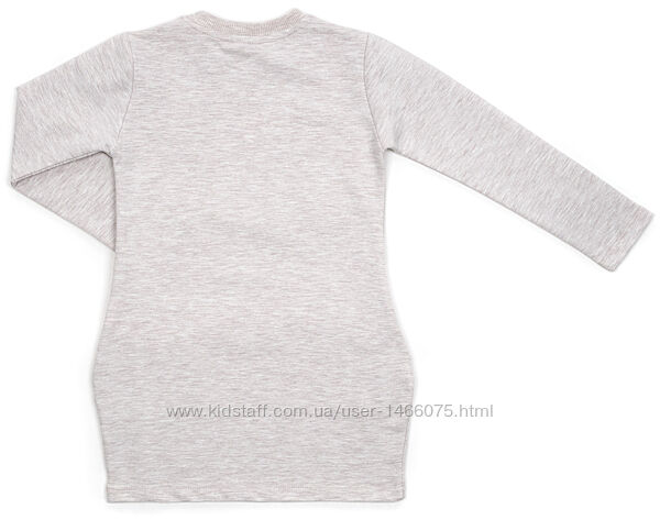 Эффектное трикотажное платье-туника с девочкой.Симпатичное, комфортное меланжевое платье-туника с длинными рукавами, украшенное эффектным объёмным принтовым рисунком с небольшими яркими деталями из пайеток, без всяких сомнений понравится вашей доченьке.