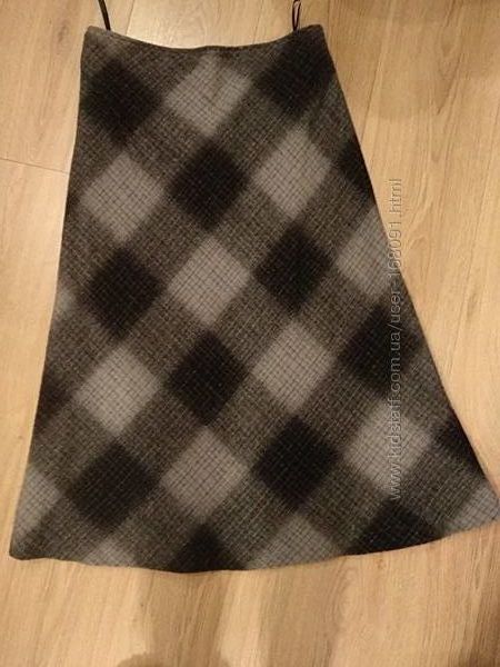 Стильна теплая юбка Esprit,миди,полуклеш ,на подкладке,за счет косой клетки очень стройнит и идеально ложится по фигуре,состояние идеальное,без дефектов, размер48,замеры: ПОТ 40 см,ПОБ 48 см,длина 79 см.